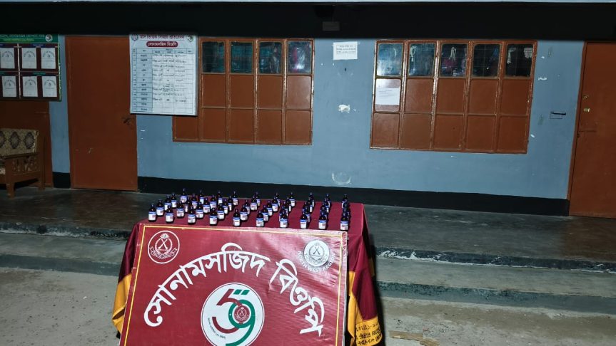 সোনামসজিদ সীমান্তে ৫৯ বিজিবির অভিযানে ৫০ বোতল ভারতীয় স্কাপ সিরাপ আটক