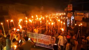 নবীনগর পৌর এলাকার আলীয়াবাদ চৌরাস্তা থেকে শুরু হওয়া মশাল মিছিলটি প্রধান সড়ক প্রদক্ষিণ করে প্রেস ক্লাবের সামনে গিয়ে শেষ হয়।