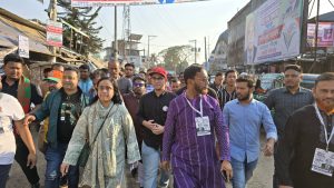 বিএনপি মনোনীত ধানের শীষ প্রতীকের প্রার্থী, জননেতা মুশফিকুর রহমানের বড় মেয়ে মেহভীন রহমান মুনিয়া, জামাতা আশফাক জামিল রহমান তাপস এবং বড় নাতি তারিফ রহমান গণসংযোগে ব্যস্ত সময় পার করছেন।