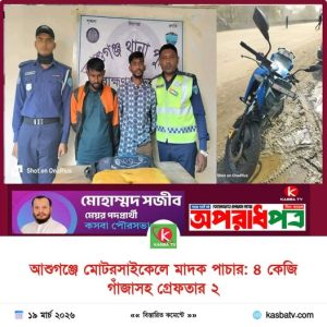 আশুগঞ্জে মোটরসাইকেলে মাদক পাচার: ৪ কেজি গাঁজাসহ গ্রেফতার ২