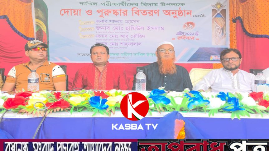 ব্রাহ্মণবাড়িয়ার কসবায় কসবা মহিলা দাখিল মাদ্রাসার দাখিল পরীক্ষার্থীদের বিদায় উপলক্ষে দোয়া ও পুরস্কার বিতরণ অনুষ্ঠান অনুষ্ঠিত হয়েছে।